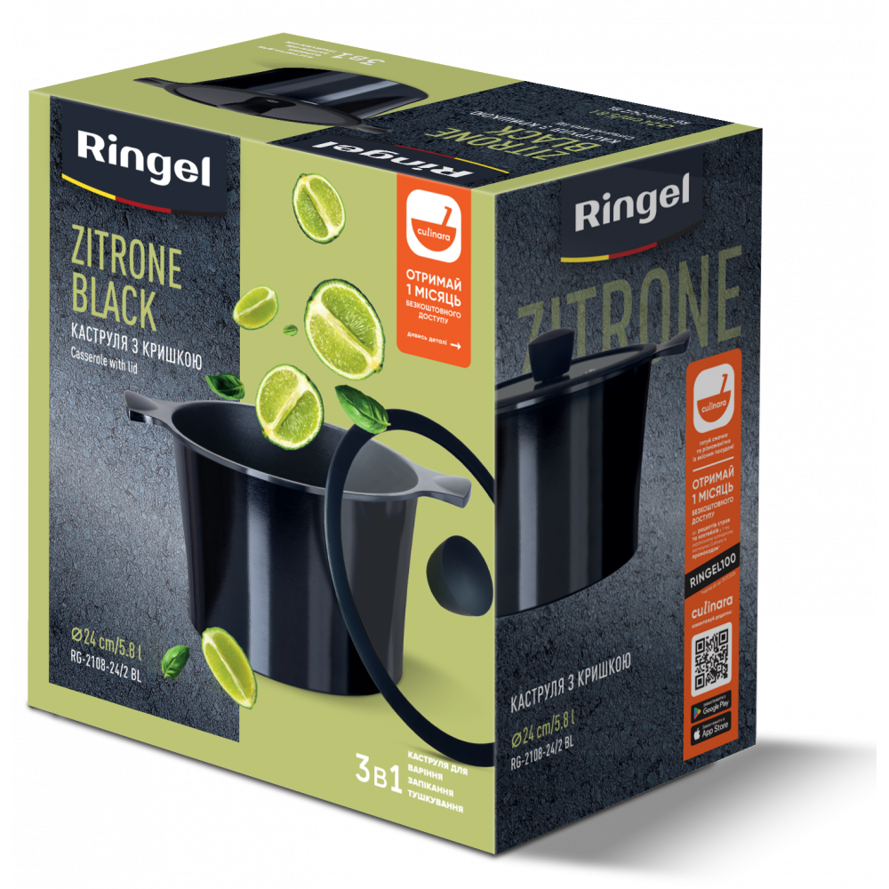 Кастрюля Ringel Zitrone Black 24см (5,8л) RG-2108-24/2 BL