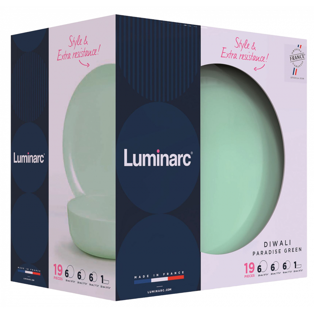 Сервиз столовый Luminarc DIWALI PARADISE GREEN 19пр. V6218 V6220Продукция Luminarc является одним из брендов концерна ARCInternational, который был основан в 1825 году на севере Франции в небольшом городке Арк и на сегодняшний день является одним из признанных мировых лидеров в производстве посуды.